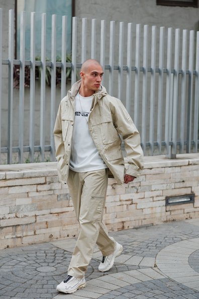 Универсальный светлый оттенок «Milk», трендовый карго-дизайн и прямой крой создают актуальный городской образ, подходящий для повседневной носки, прогулок, путешествий и активного отдыха.